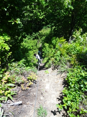 そんな八石山のおぐにルートは、静かで、しかも変化に富んだ楽しい登山道。春にはブナの若葉がやさしい木陰をつくり、急登あり、ロープ場あり、そして山頂では360度の視界が開けます。