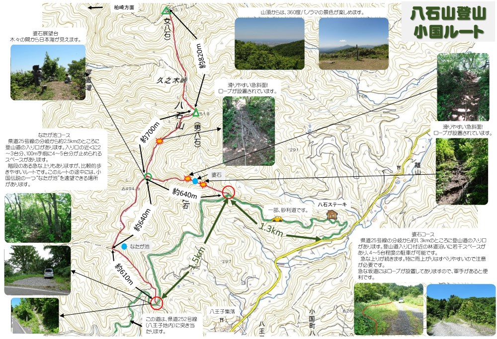 63kmレースの参加者には「おぐにの山」として印象深い八石山ですが、一般には柏崎側から登る南条八石(女八石)の方が知られています。エチカンで通る八石山(男八石)まで足を延ばす人は多くはなく、まして、小国側から登る人は地元の方かトレイルランナーくらいかも・・・。