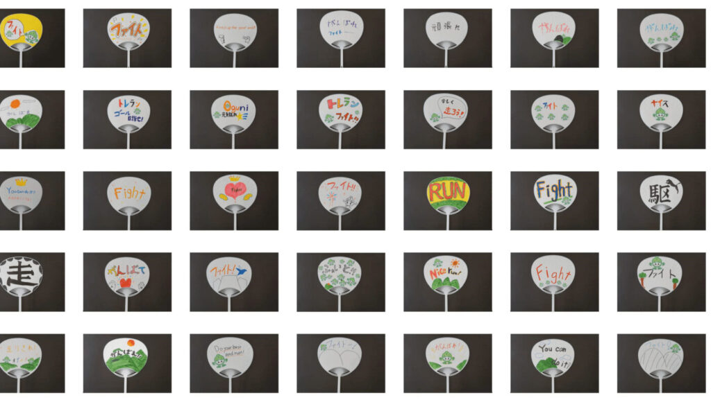 沿道で応援する地域の皆さんが使うこんなうちわを作ってくれたこともありました!