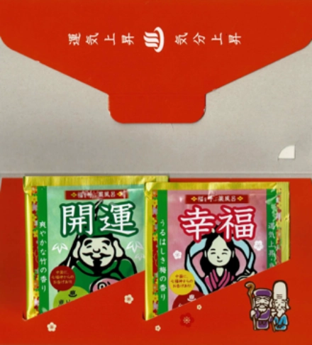 弁財天と恵比寿をモチーフにした入浴剤が2包入っています。